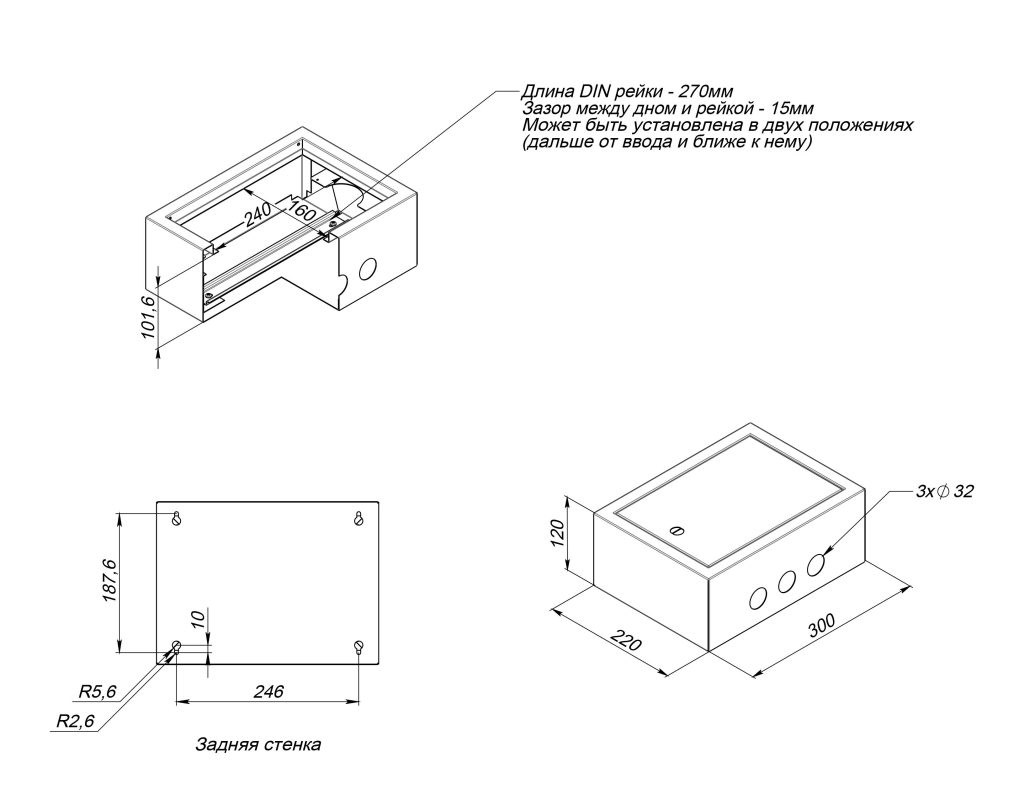 Габаритные размеры, мм: 220х300х120