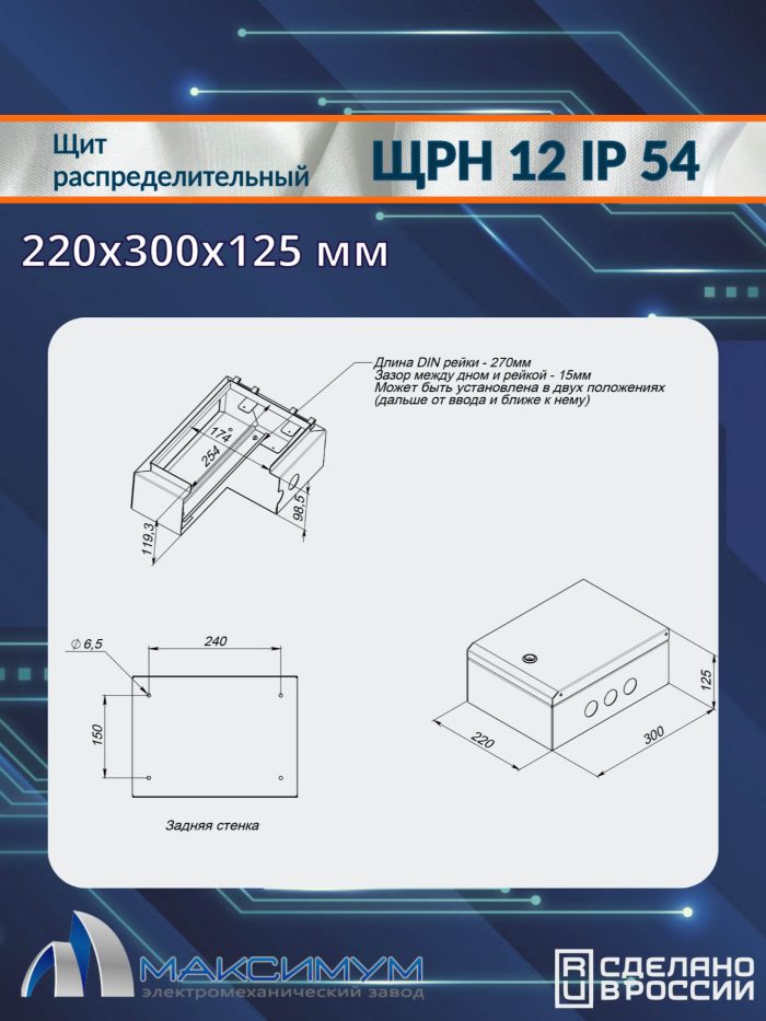 Корпус щита распределительного навесного ЩРН 12 (220х300х125) IP54