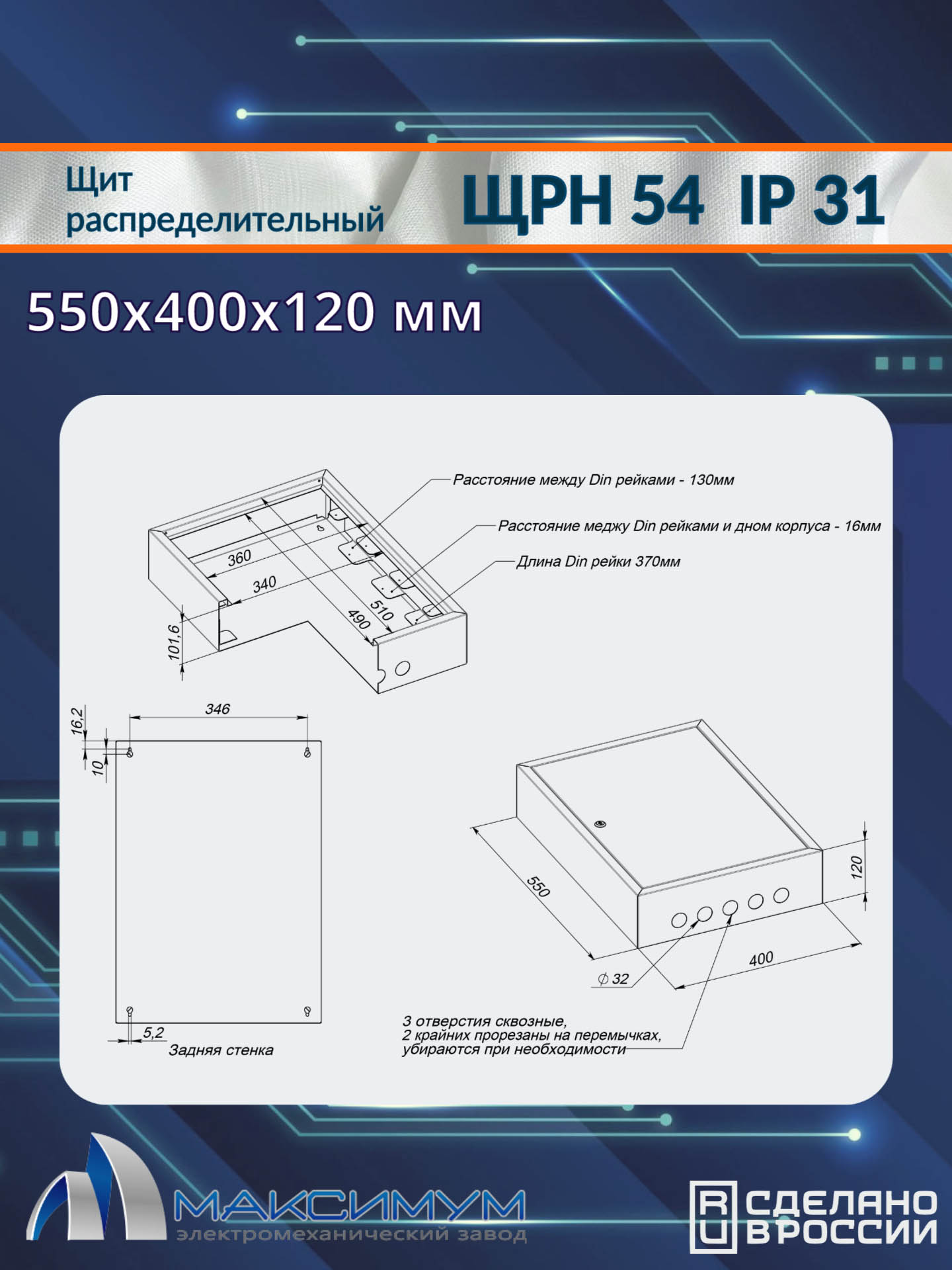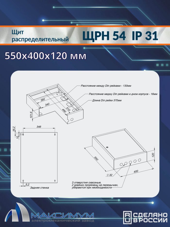 Корпус щита распределительного навесного ЩРН 54 (550х400х120) IP31