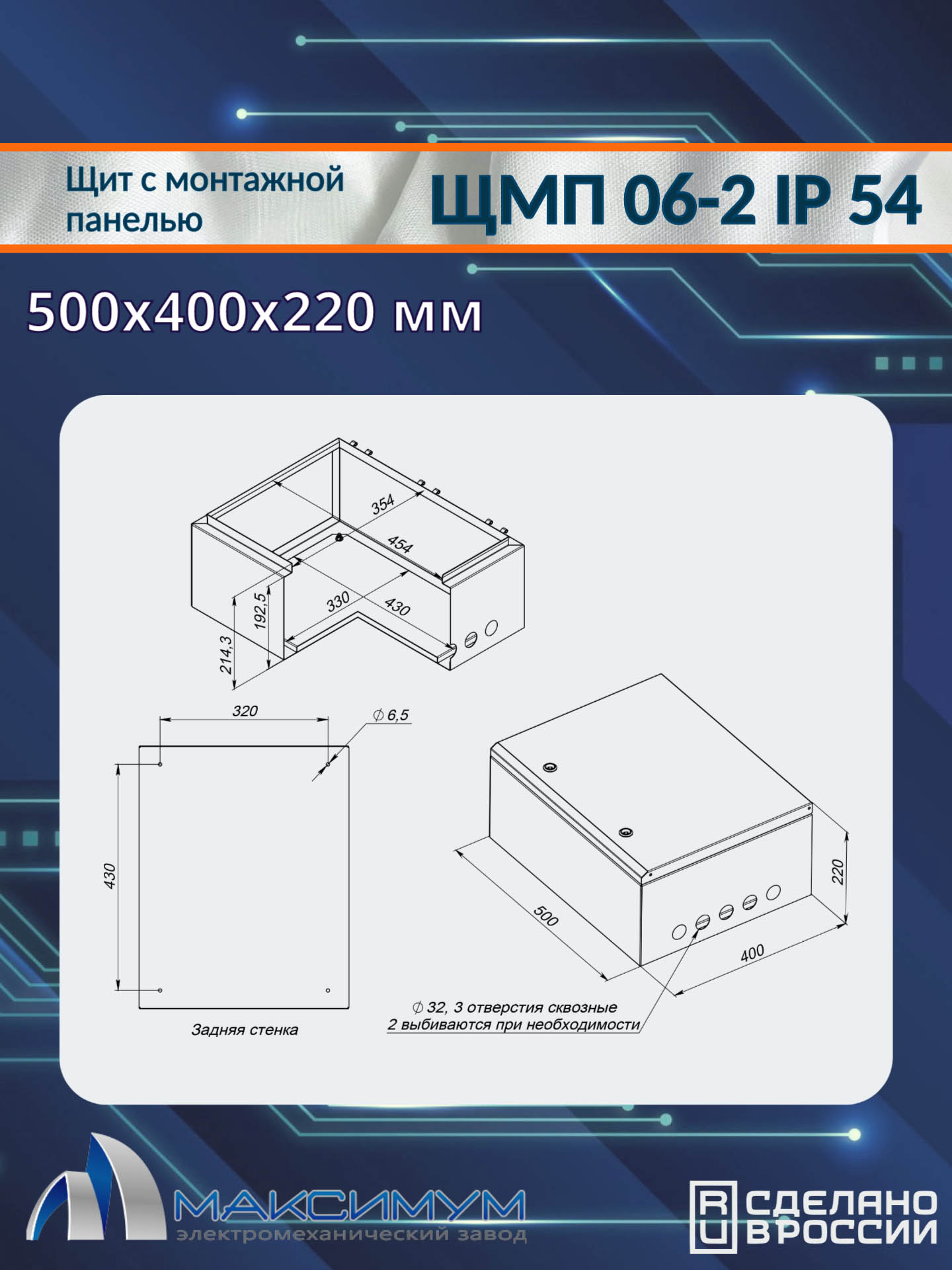 Корпус щита с монтажной панелью ЩМП 06-2 (500х400х220) IP54